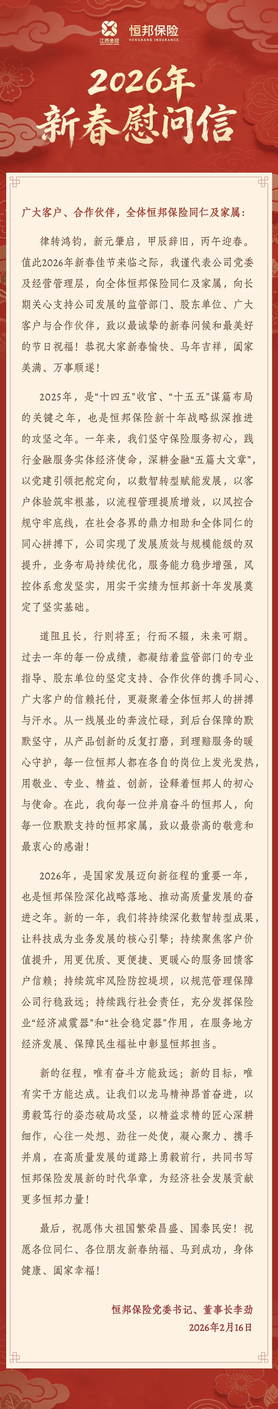 恒邦保险2026年新春慰问信